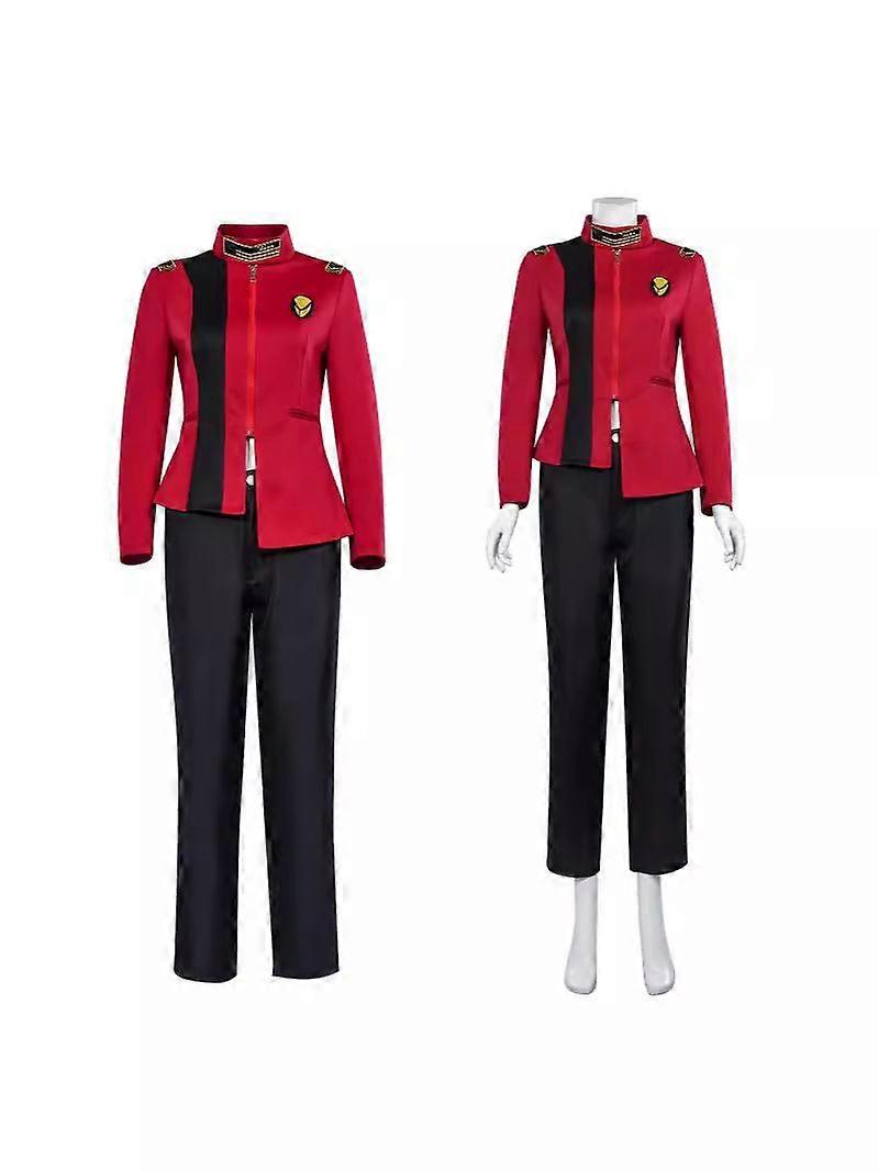 Women's Military-Inspired Red and Black Cosplay Uniform Anime Style Jacket and Pants Set