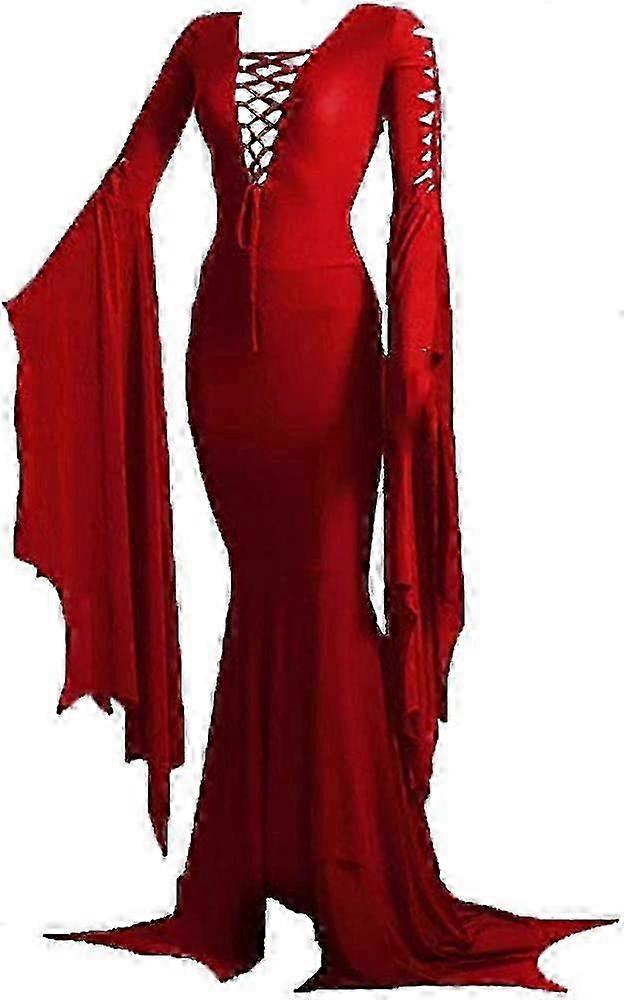 Women's Morticia Addams Floor Dress Costume Witch Sexy Gothic Vintage Dress for Halloween Carnival Party