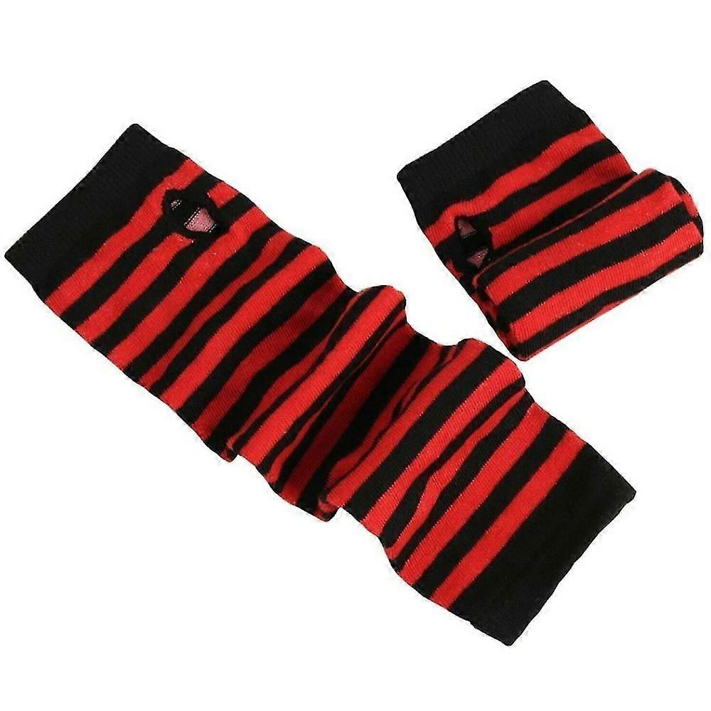 Women's Wrist Arm Mittens Long Hand Warmer Fingerless Striped Gloves