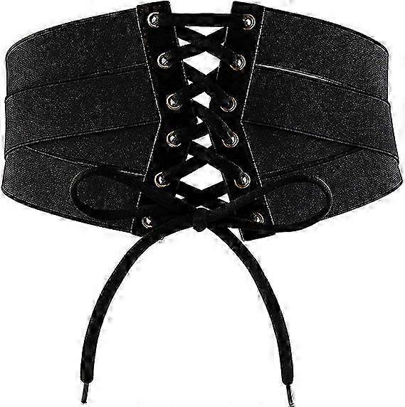 Women's Retro High Waist PU Leather Corset Belt - Elastic Wide Band Wrap Cinch with Lace-Up Tie