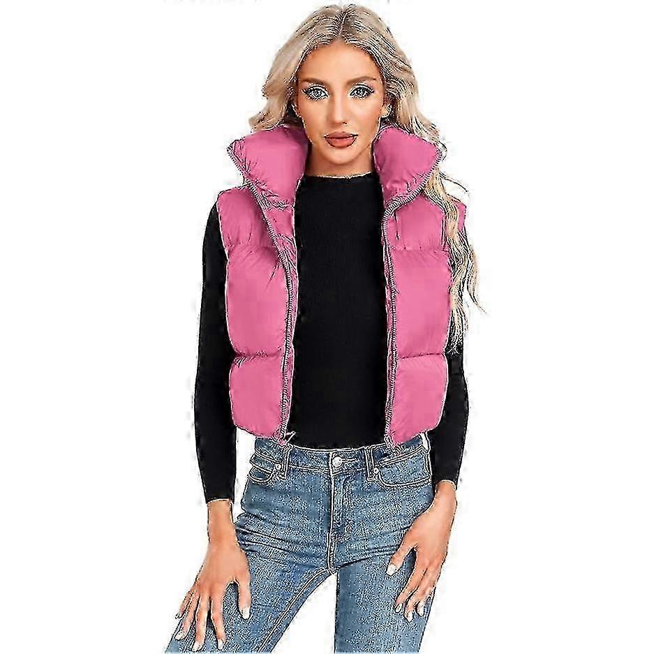 Women's Winter Stand Collar Crop Vest Sleeveless Warm Zip Up Outerwear Coat