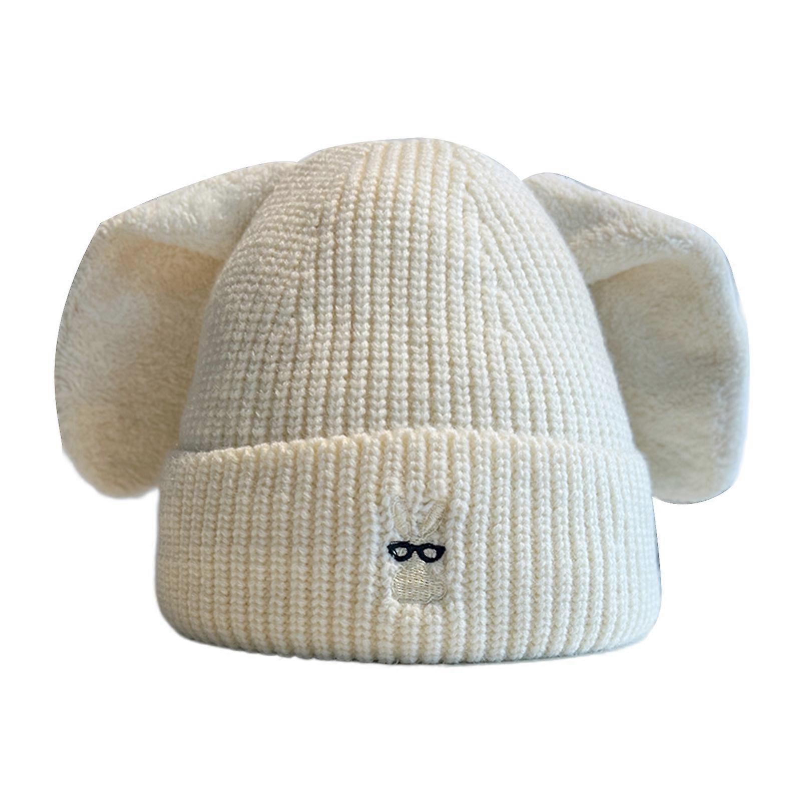 Knit Rabbit Ear Hat for Female Winter Beanie Cap InsStyle Bonnet Funny Skull Hat Teens Hiking Cycling Cold Weather Hat White