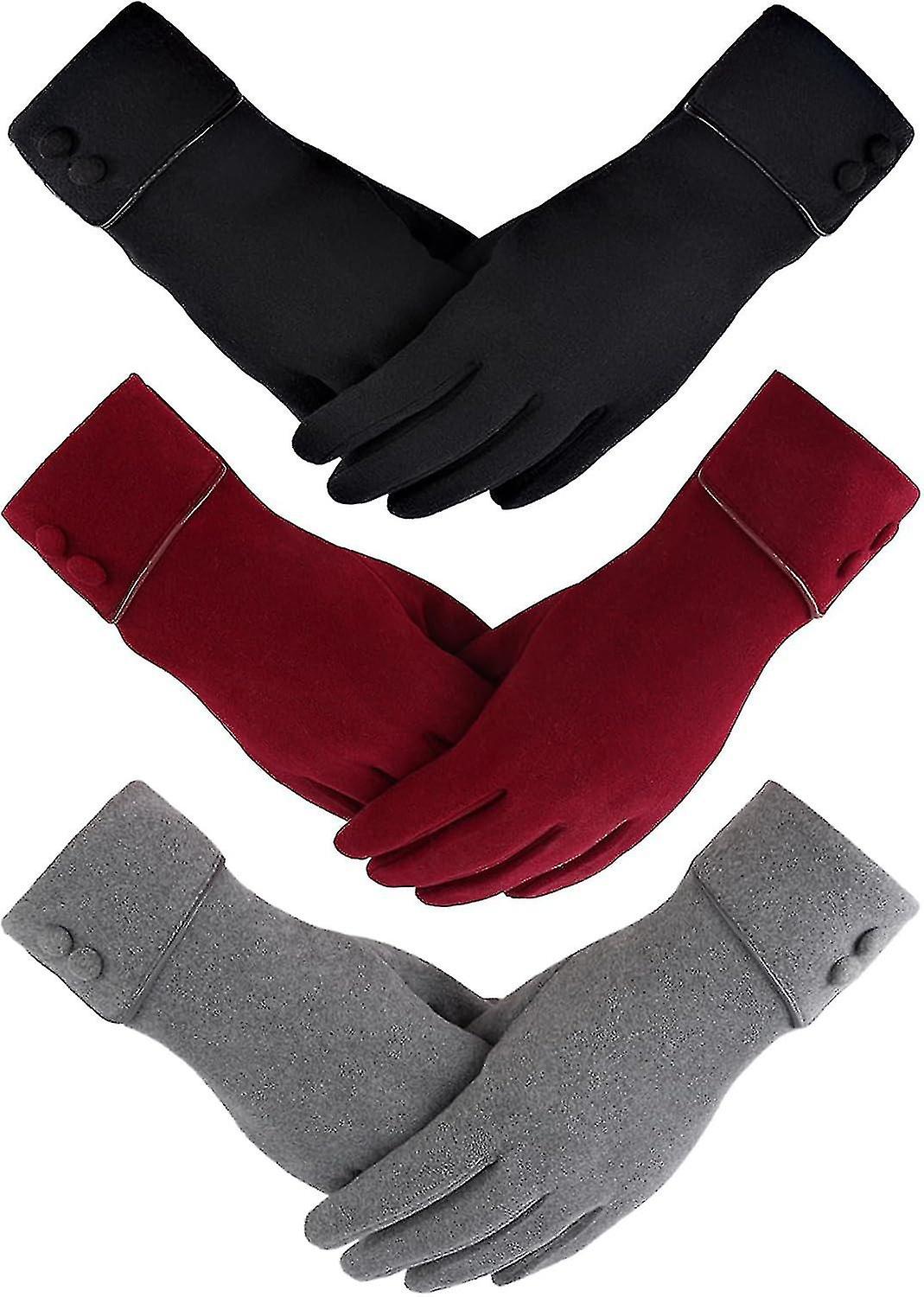 Women's Winter Warm Gloves Touch Screen Texting Lined With Plush Warm Gloves 3 Pairs