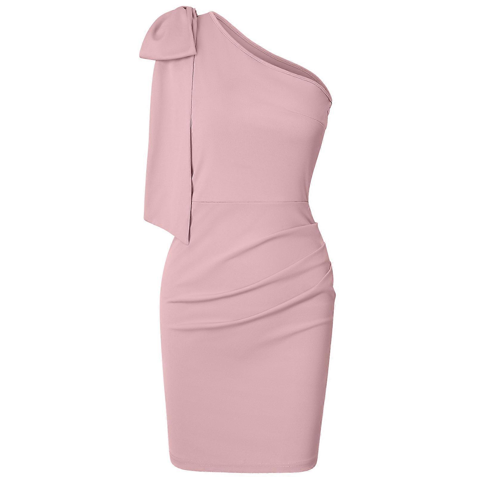 Women Summer Outfits Bandage One Shoulder Off Sexy Bodycon Dresses Sleeveless Dress Ruffle Short Dresses for Summer Pink XL