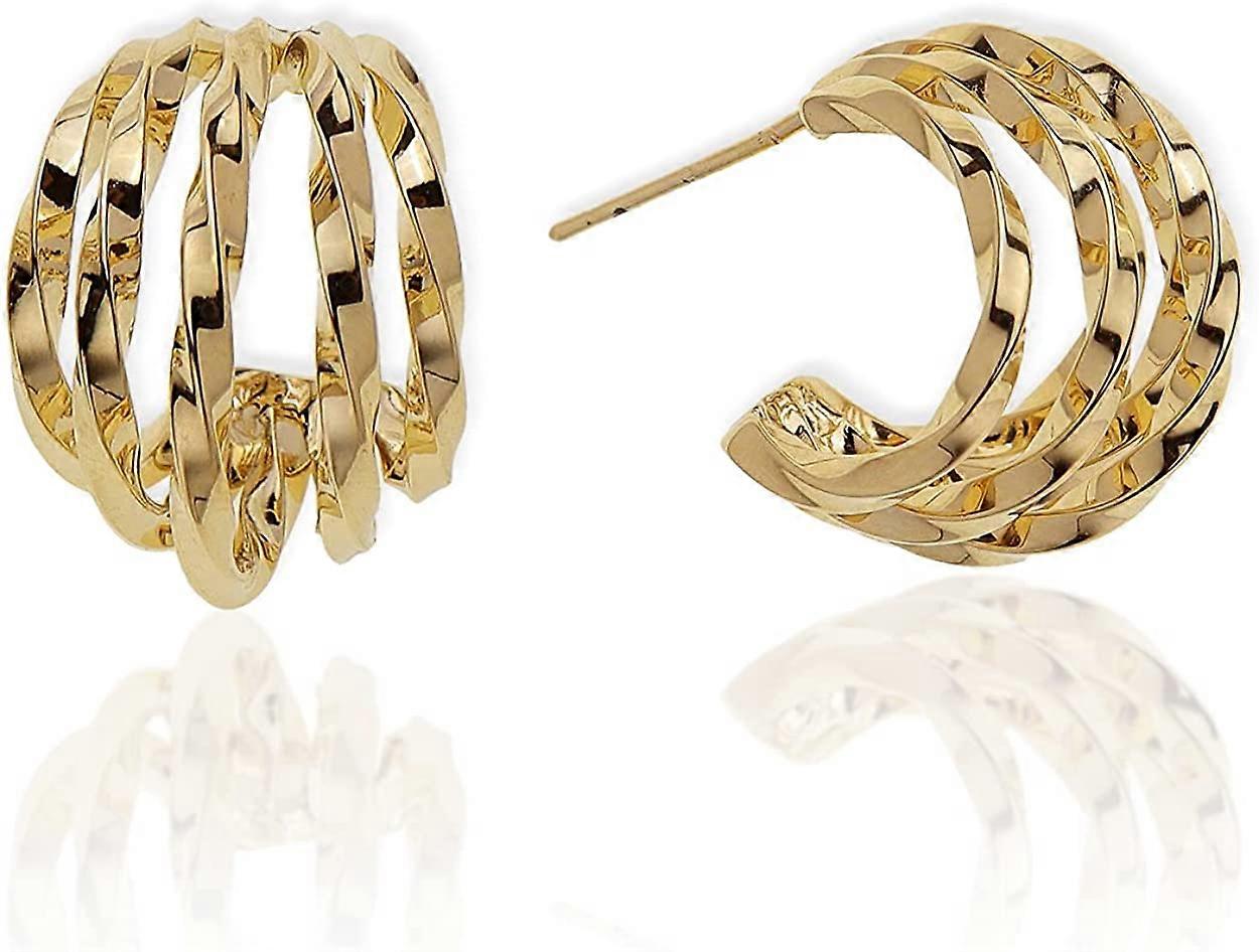 Gold Multi Hoops C Shaped Wrap Earring for Women Girls - Trendy Dainty Split Chunky Thick Triple Hoop Claw Open Huggie Cartilage Stud Hypoallergenic P