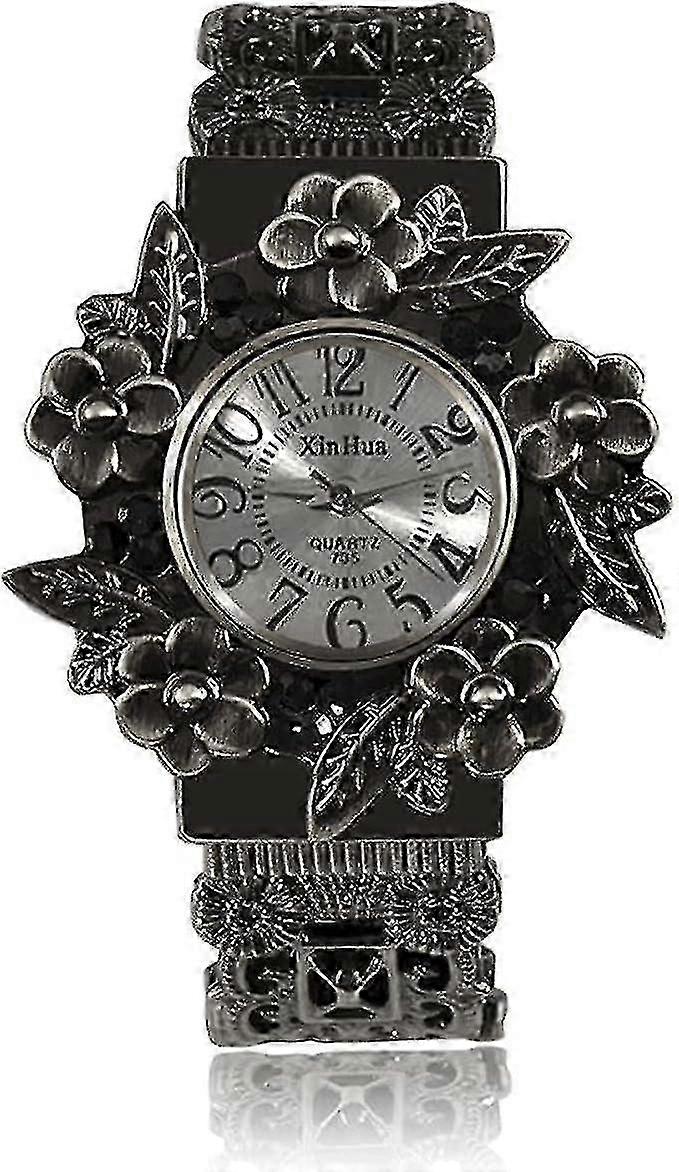 Women Girls Vintage Cuff Bangle Bracelet Watch Carved Flowers Analog Quartz Wrist Watch