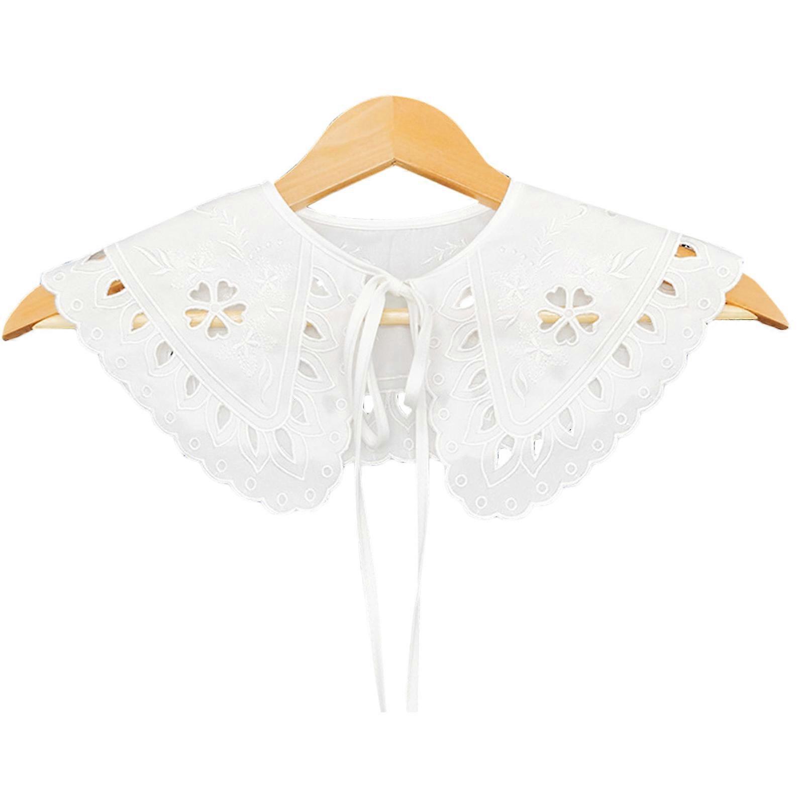 Women Girls White Faux Collar Shawl Embroidery Cherry Blossom Floral Dress Cape