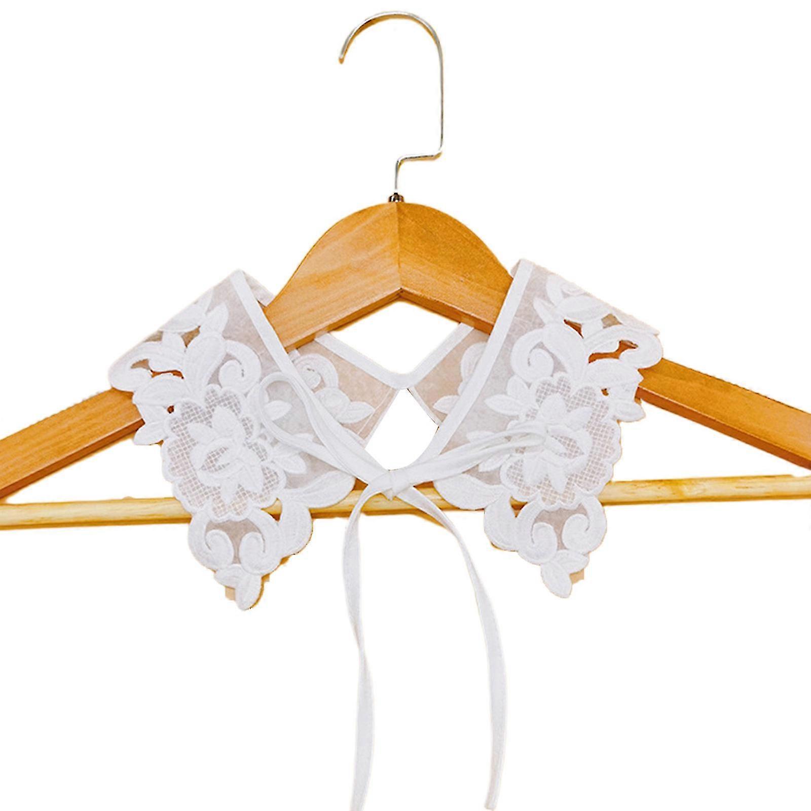 Women Girls Hollow Out DIY Detachable Collar Shawl Embroidery Plaid Flower Leaves White Scarf Decorative Lace-Up Capelet White