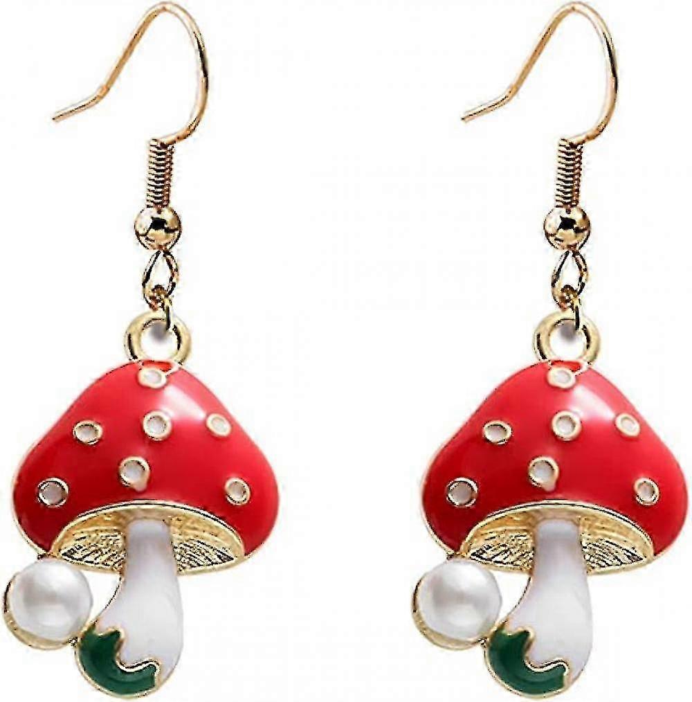 Women's Aesthetic Mushroom Earrings 14k Gold-Plated Red Enamel Gift