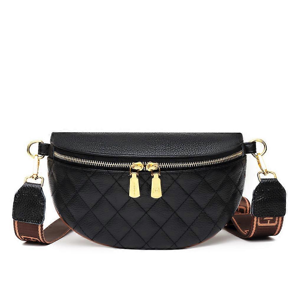 Women's small modern black crossbody bag women's bag with wide shoulder strap, bum bag women's leather mobile phone bag women's houses