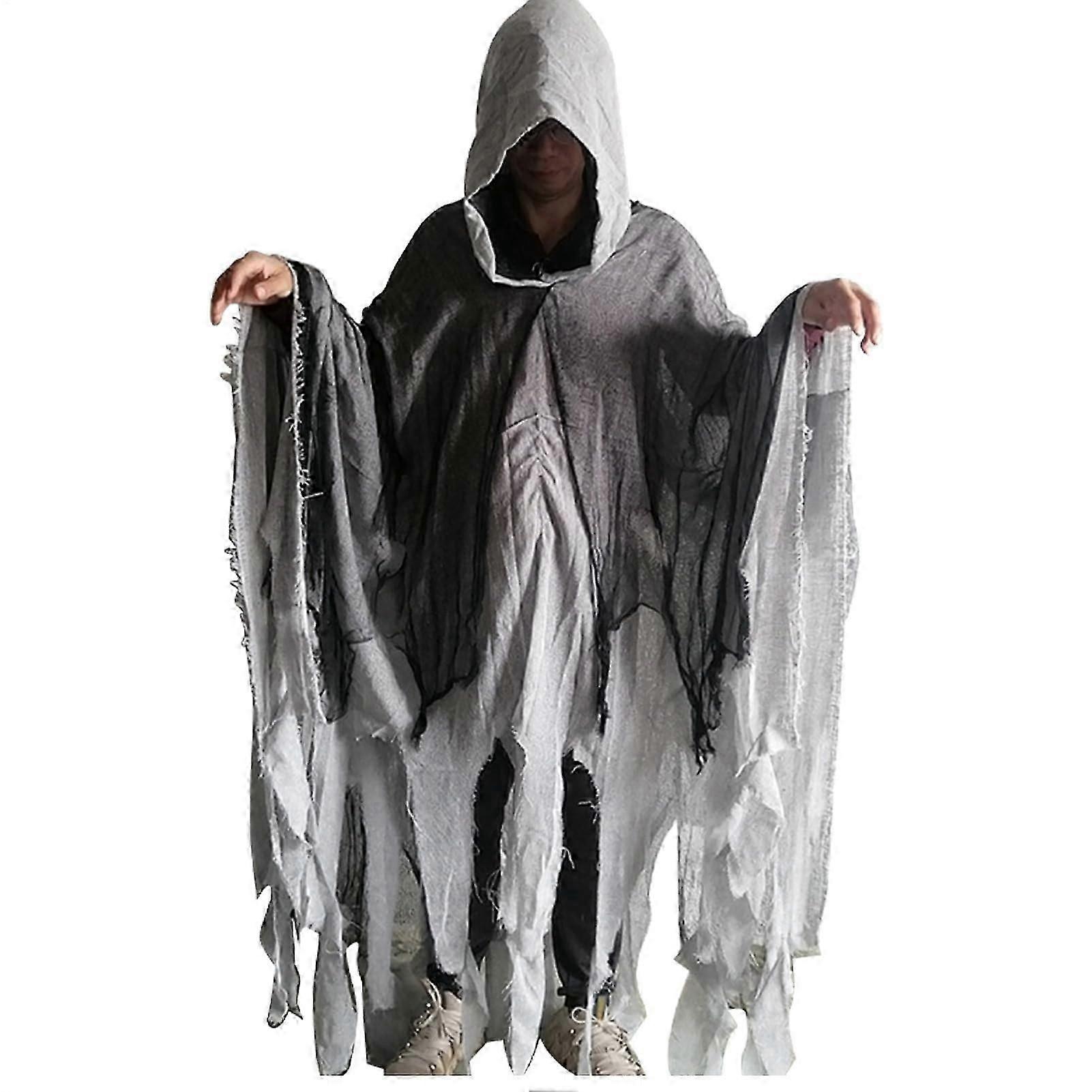 Female ghost costume haunted hooded cloak, breathable spooky gray