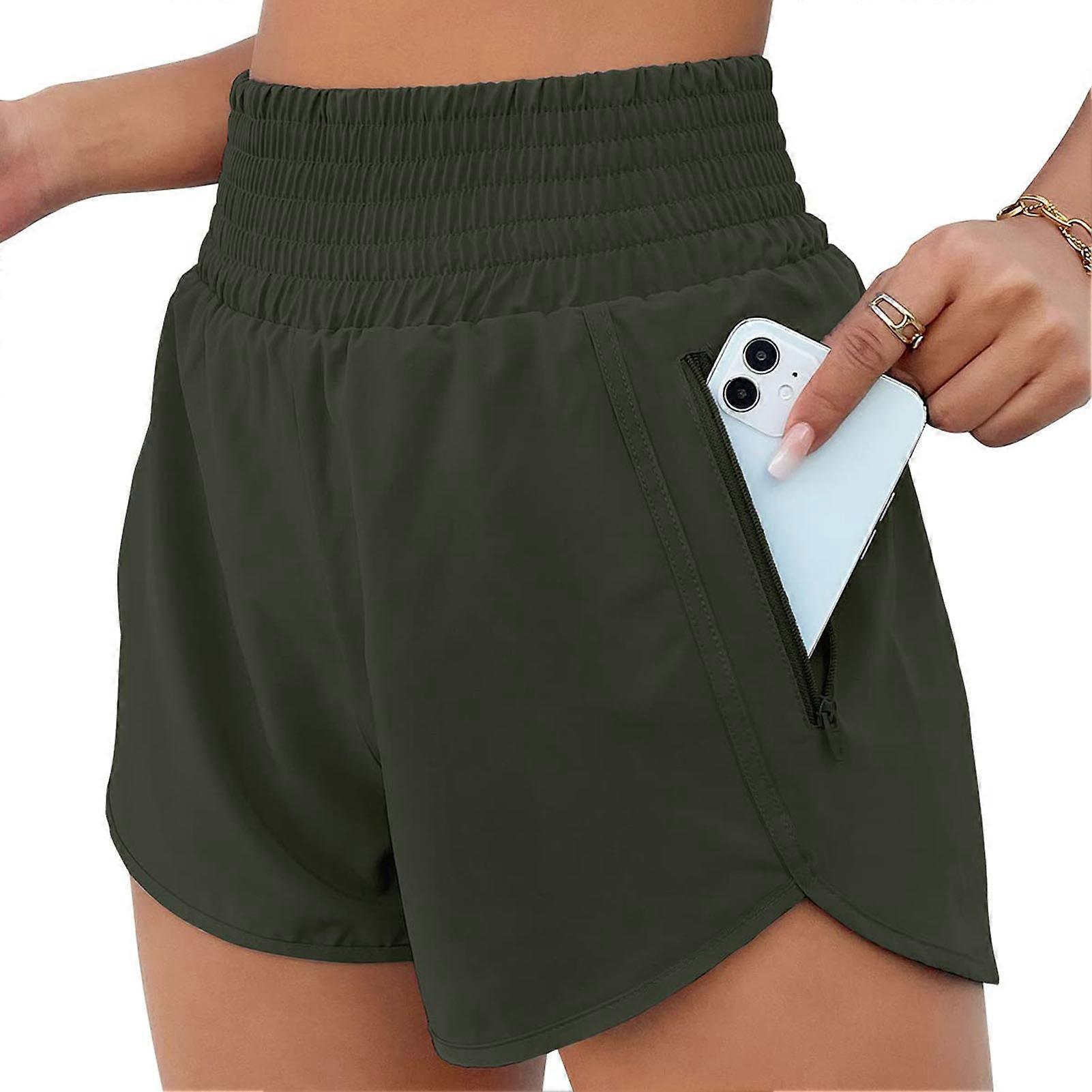 Women Elastic Shorts High Waisted Pure Color Pocket Sporty Running Athletic Shorts