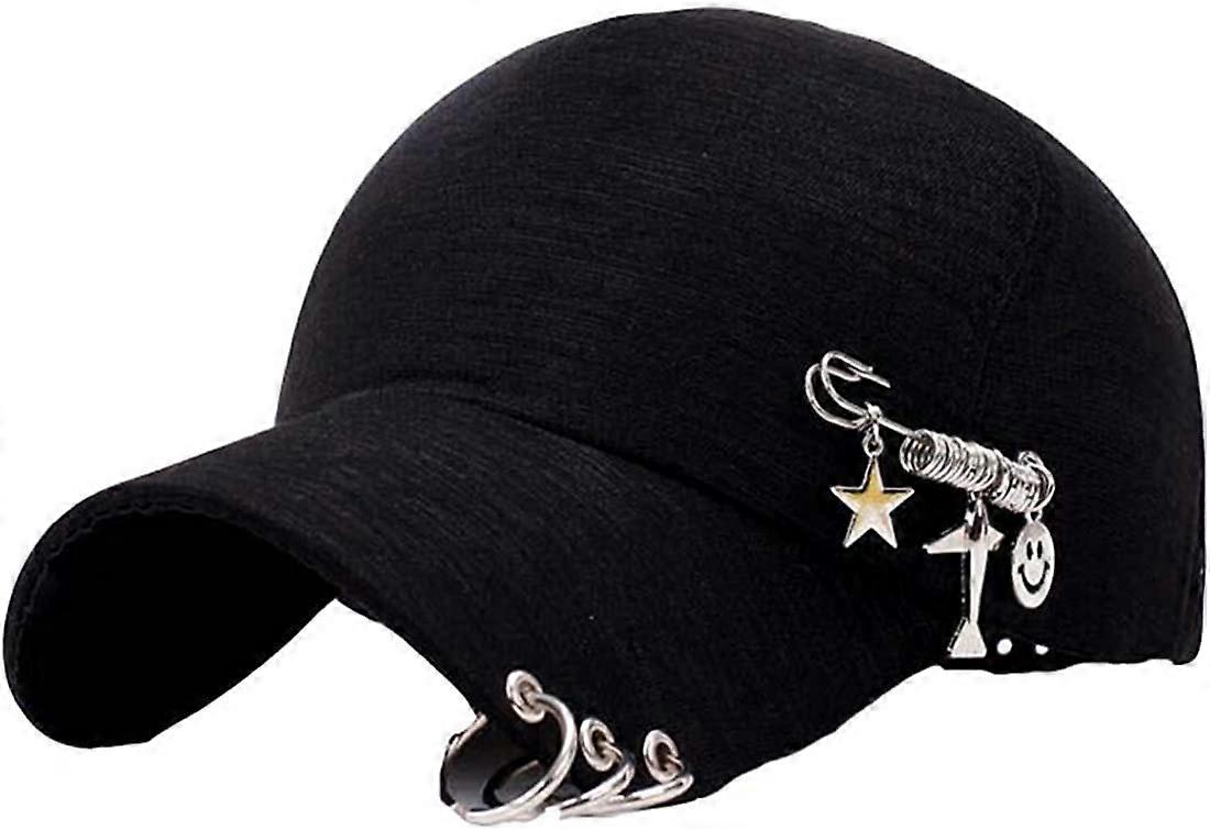 Women's Personality Three-Ring Chain Baseball Caps Summer Street Hip Hop Cap Pink/White Black One Size