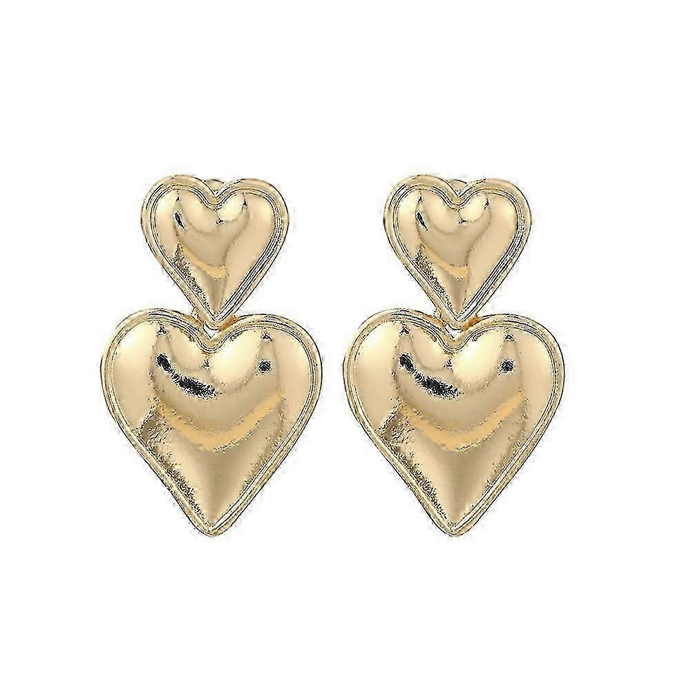 Women's Love Heart Jewelry with Double Heart Gold Plated Drop Earrings for Statement Wear