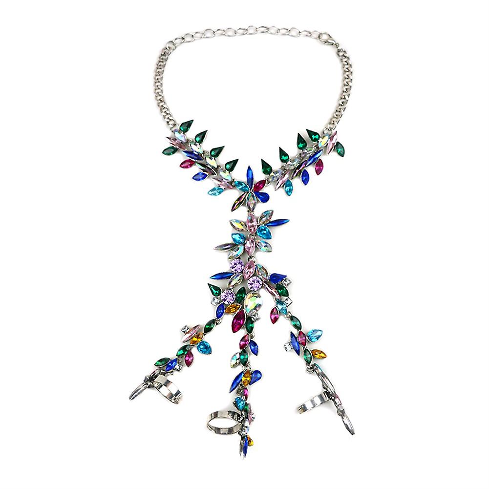 Women Beautiful Rhinestone Decoration Alloy Ring Bracelet (Silver Colorful)