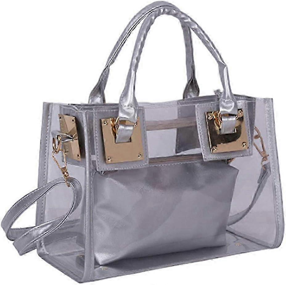 Women's 2-Piece Clear PVC Tote Beach Shoulder Bag White Purse Satchel