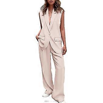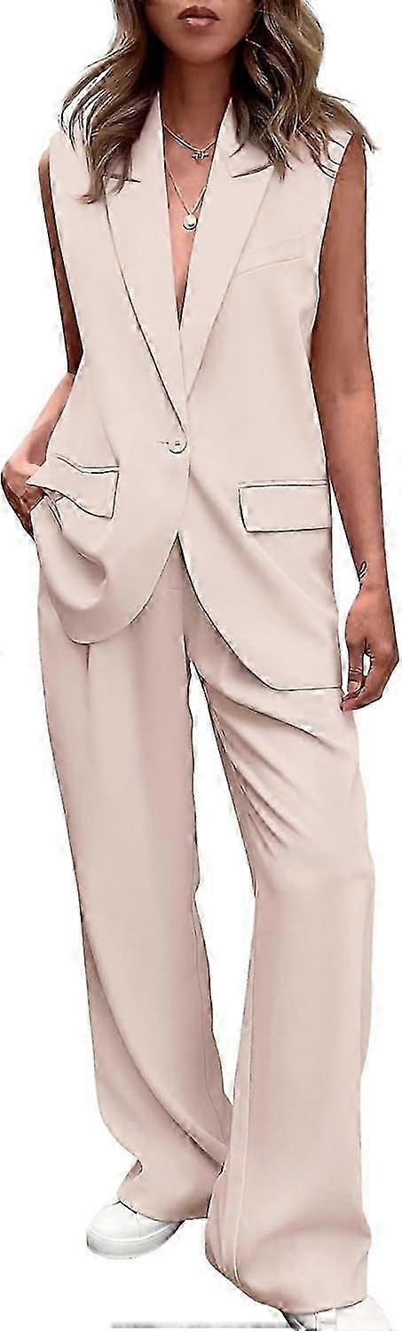 Women's 2 Piece Outfits Sleeveless Suit Vest and Wide Leg Pants Business Casual Blazer Sets