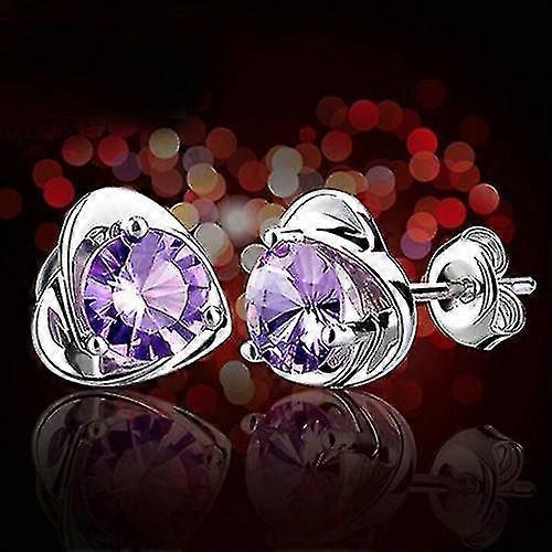 Women Love Heart Purple Rhinestone Silver Plated Earrings