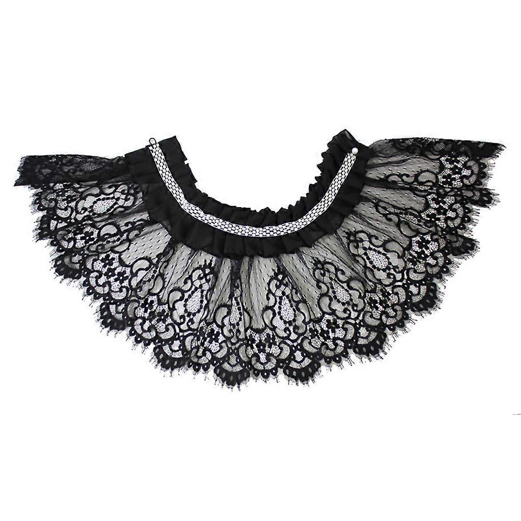 Women Hollow Out Embroidered Floral Lace Wedding Shawl Bolero Ruffles Pleated Hi Black
