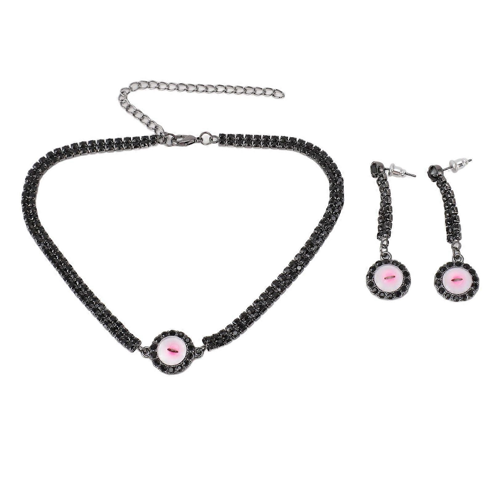 Women Eye Necklace Earrings Set Lightweight Non Allergic Black Rhinestones Necklace Earrings Pendant Set