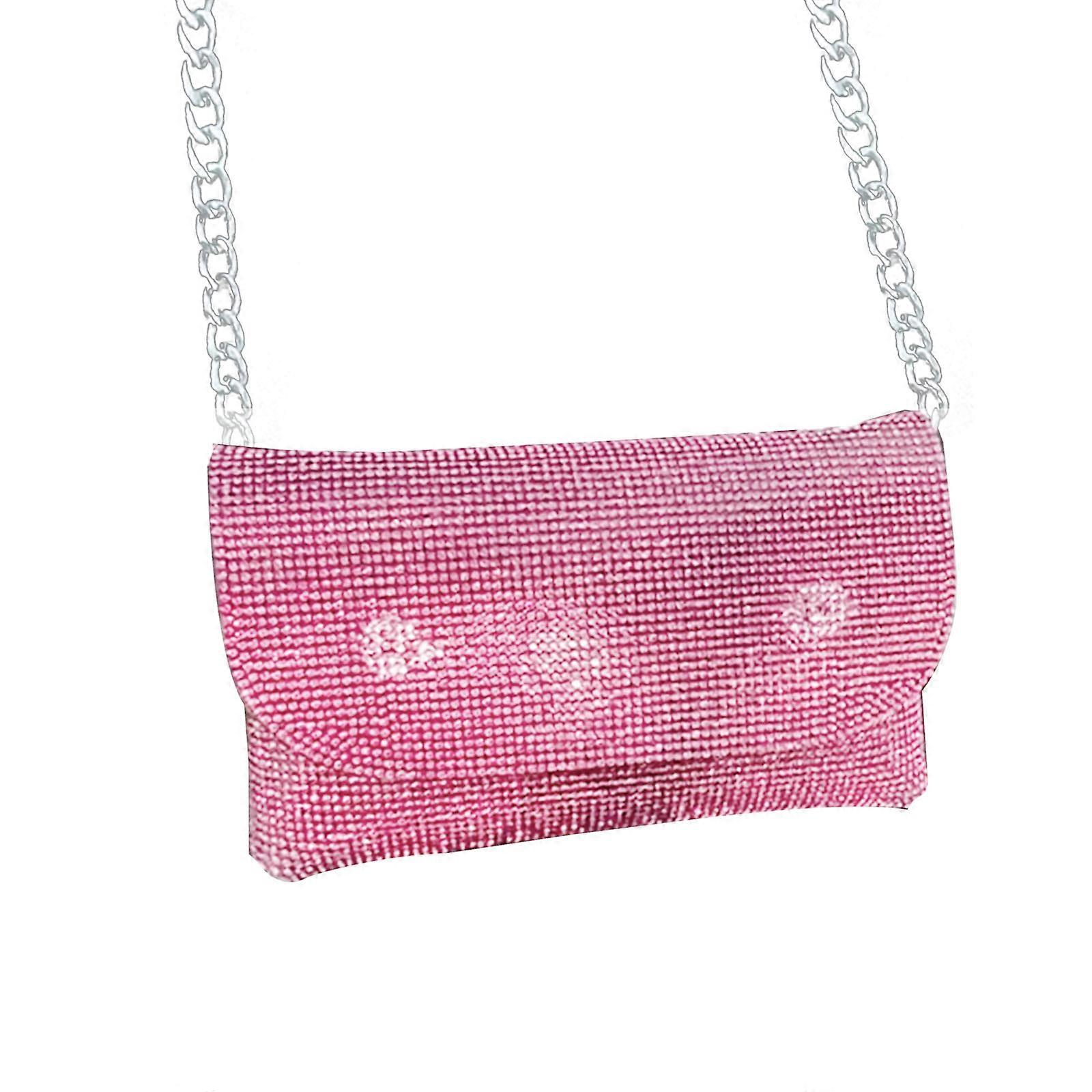 Women Evening Clutch Bag Handbag Shoulder Crossbody Bags Wedding Prom Party Purse with Detachable Chain Pink