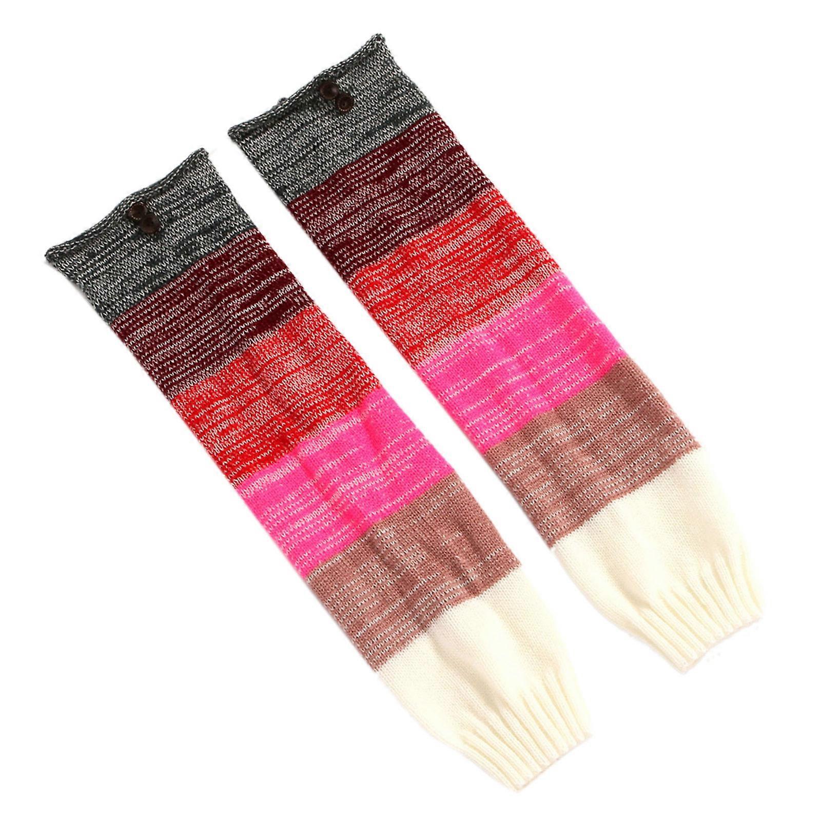Women Winter Knit Long Leg Warmers Rainbow Stitching Buttons Boot Cuffs Socks Green