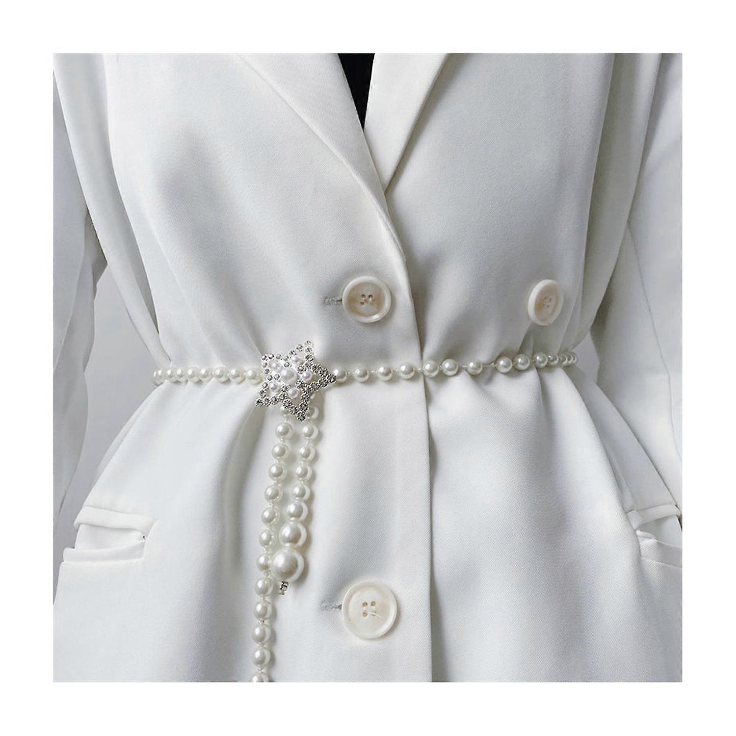 Women Waist Chain Flower Butterfly Decor Faux Pearl Smooth Luster Retro Adjustable Waist Accessory