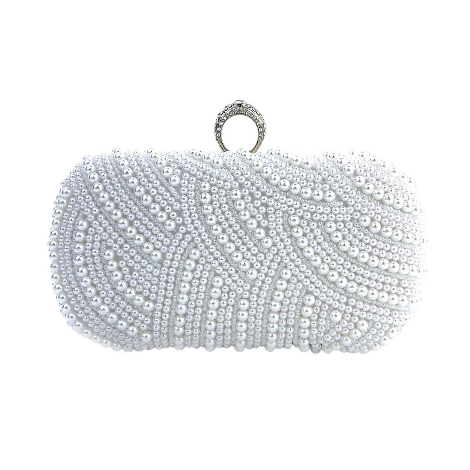 Women Elegant Shoulder Bag Pearls Evening Bag Chain Strap Messenger Bag Evening Handbag Purse for Party Prom White