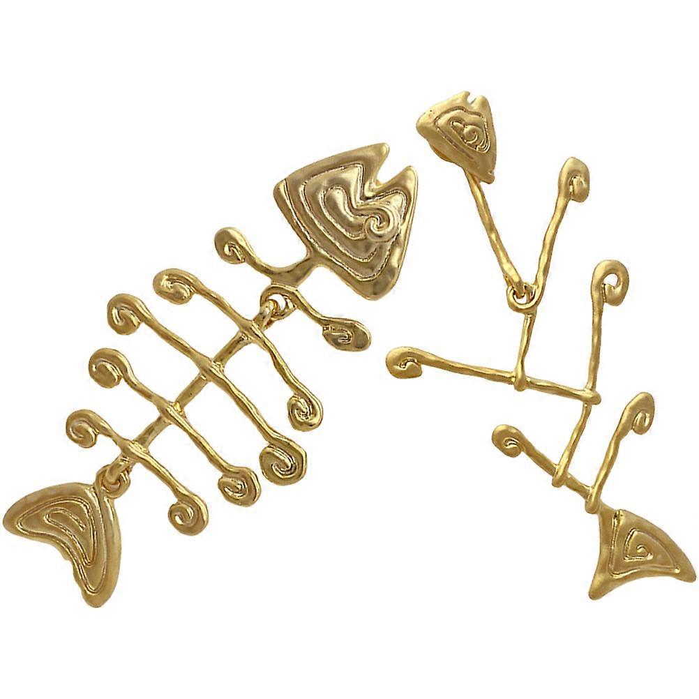 Women Girls Fish Bone Shape Dangle Earrings Jewelry Golden Alloy Non-Fading Nickle- Pair