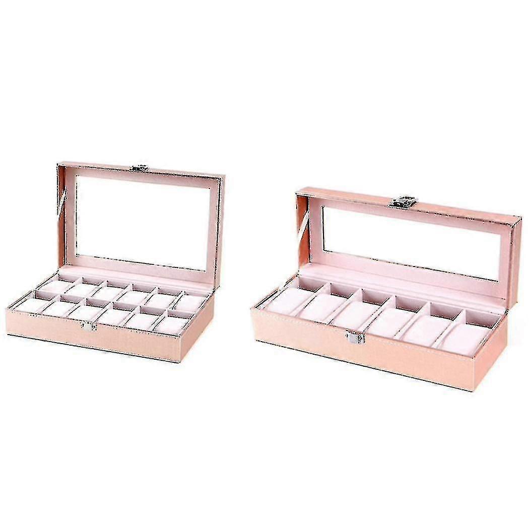 2 Pcs Special Case for Women Girl Friend Wrist Watches Box Storage Collect PU Leather Cabinet Gift