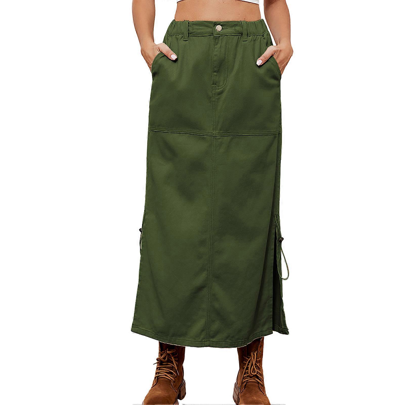 Women Casual Skirt Elastic Waist Side Split Drawstring Button Closure Fashion Skirt for Daily Wear