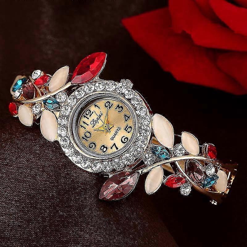 Women Quartz Wrist Watch Colored Flower Petal Bracelet Strap Decorative Watch