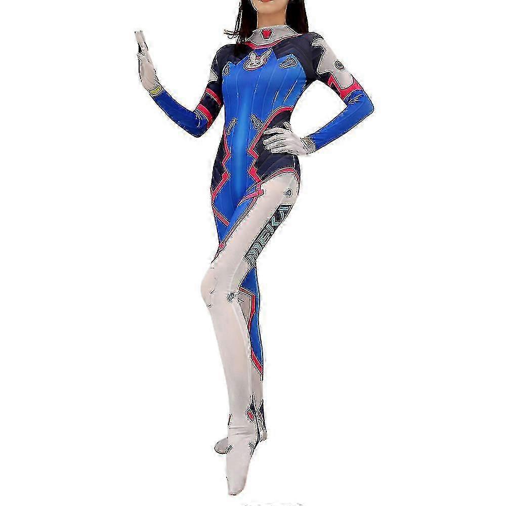 Women Game Overwatch Dva Cosplay Party Costume Blue Bodysuit Halloween Carnival Party Jumpsuit Gifts