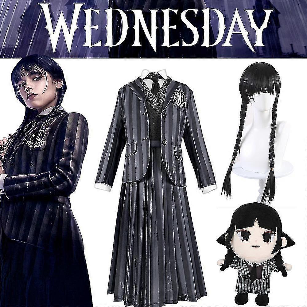 Women Cosplay Party Wednesday Addams Deluxe Costume Set Nevermore Academy School Uniform Outfit/Wigs/Doll Gifts