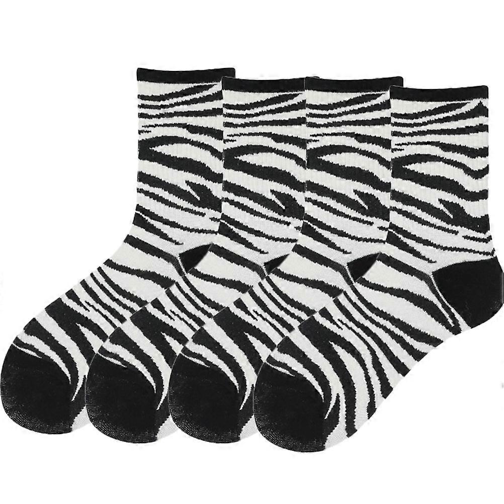 Women Cotton Socks Zebra Pattern Tube Socks Breathable Protective Travel Outdoor Activities 2Pairs