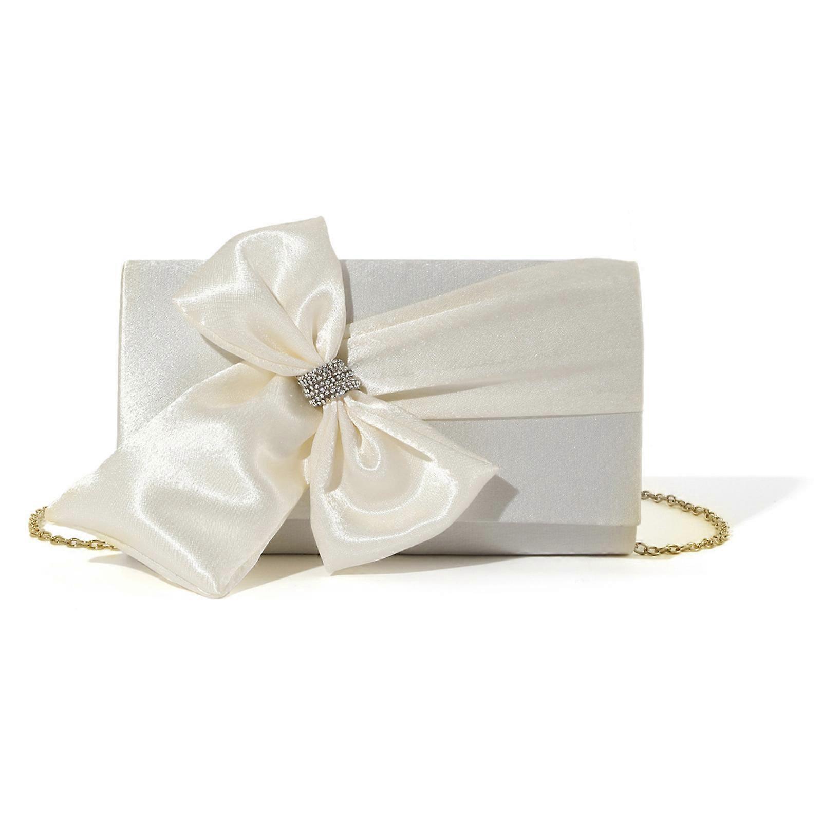 Women Satins Evening Bag Bows Shoulder Bag Stylish Crossbody Bag with Removable Chain for Cocktail Party Wedding White