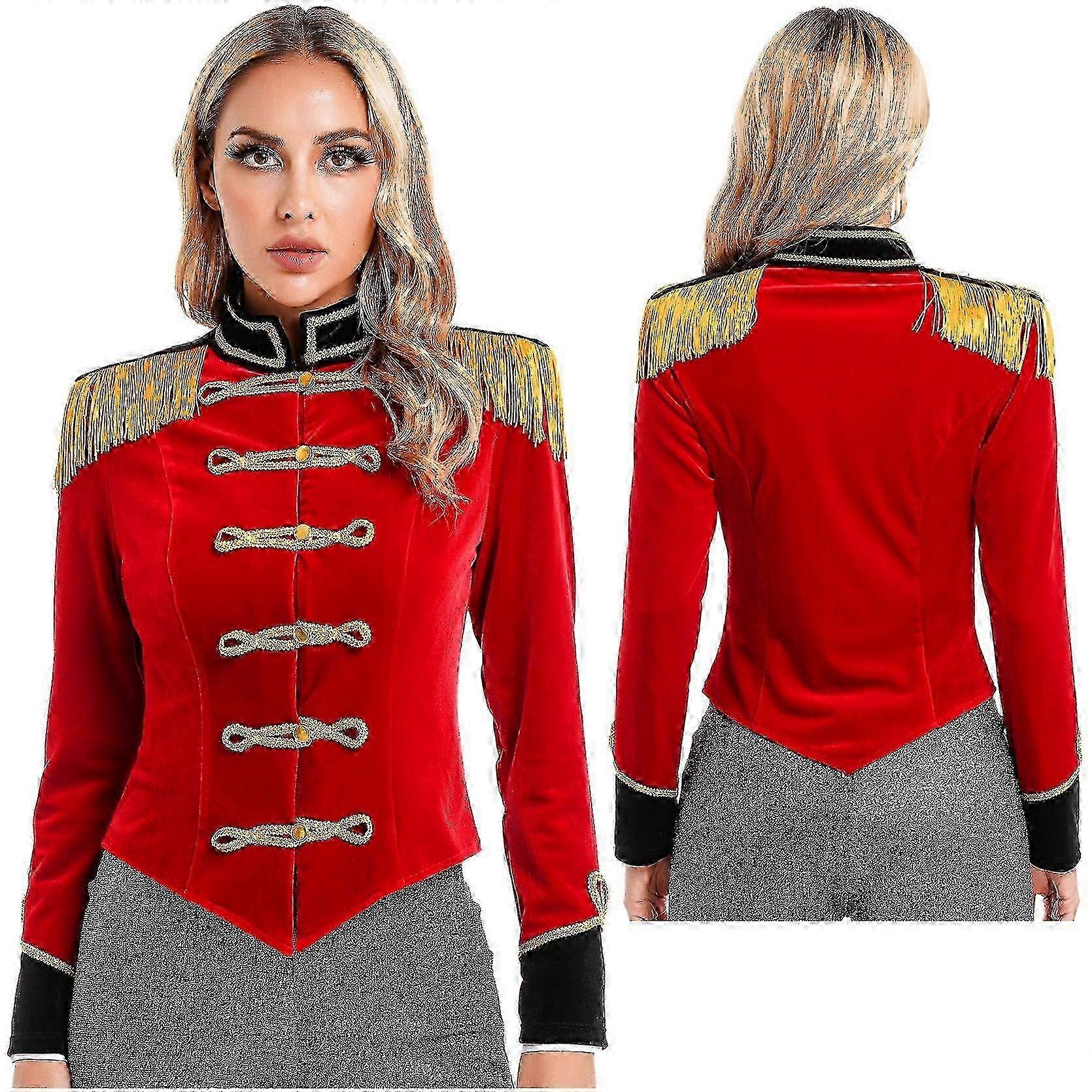 Women Circus Ringmaster Cosplay Costume Halloween Theme Party Long Sleeve Stand Collar Fringed Shoulder Board Velvet Jacket Coat