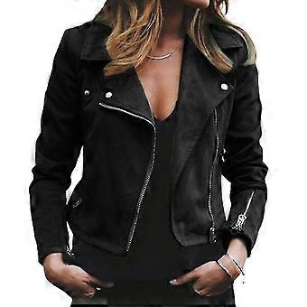 Women Zip Up Biker Jacket Cropped Long Sleeve Lapel Coat Casual Slim Fit Short Outerwear