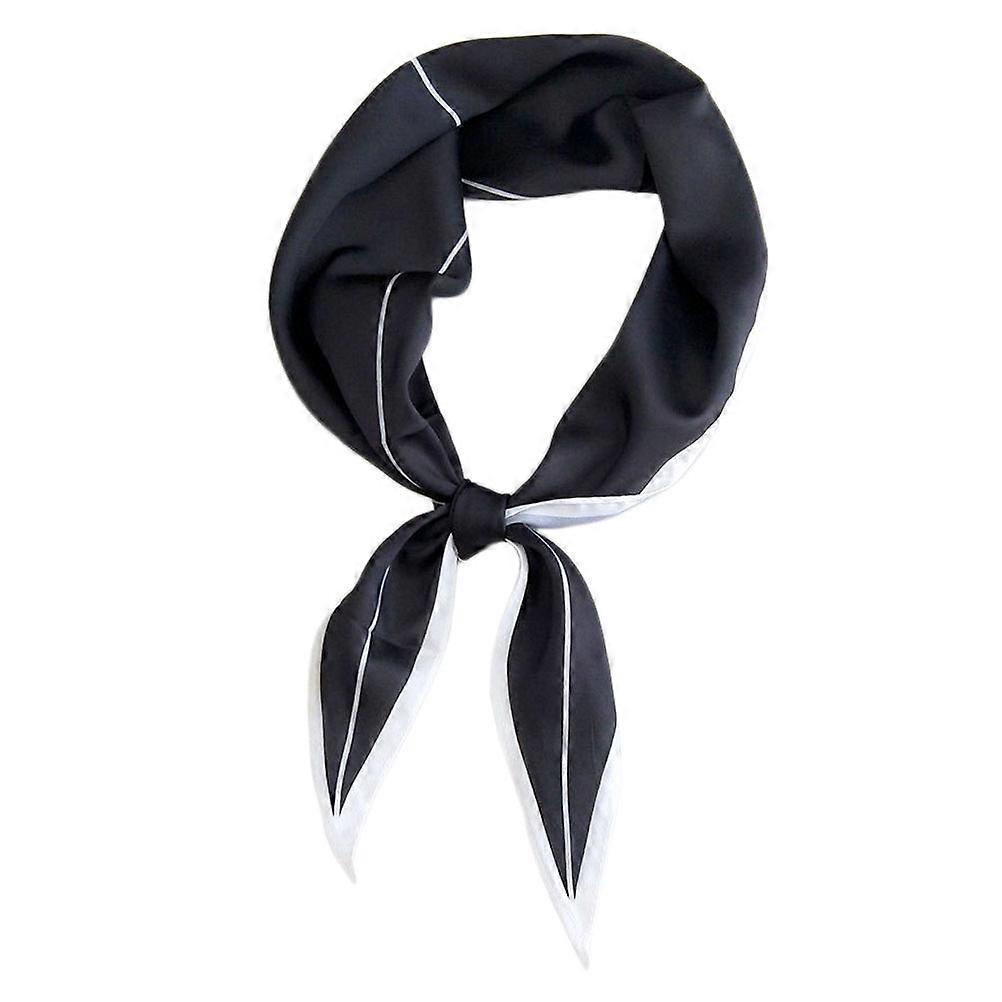 Women Scarves Rhombus Pattern Emulation Silk Neckwear Shopping Travel Work Black 118x38cm 1Pc