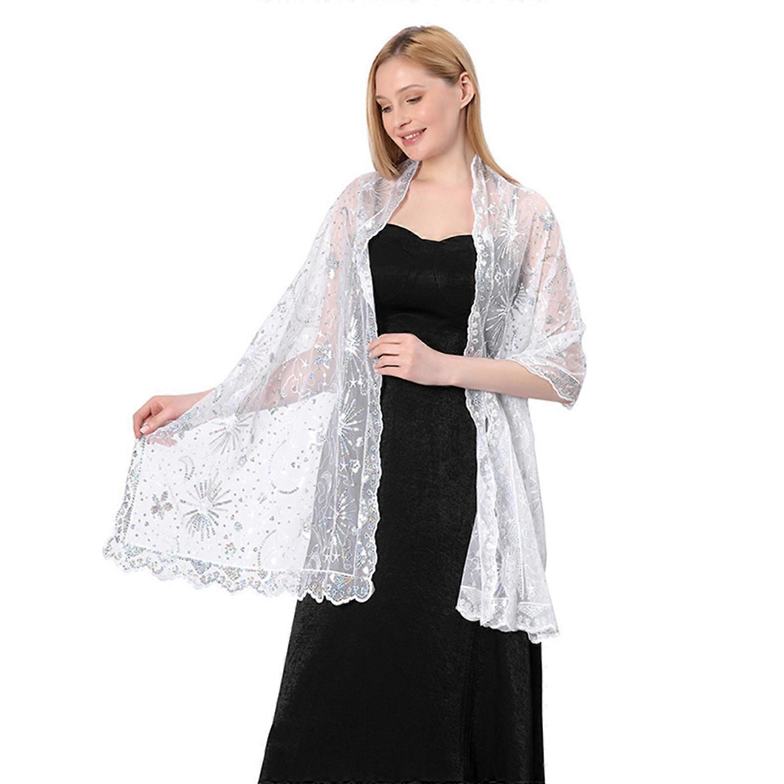 Women Squin Shawl Moon and Star Shawls And Wraps For Evening Dresses Bridesmaid Shawl Bridal Shawl Wedding Shawls Wraps White