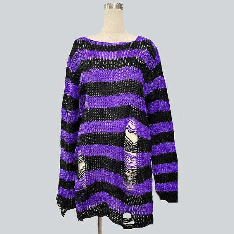 Women Stripe Sweater Long Sleeve Tops Ladies Casual Jumper Pullover Gothic Punk