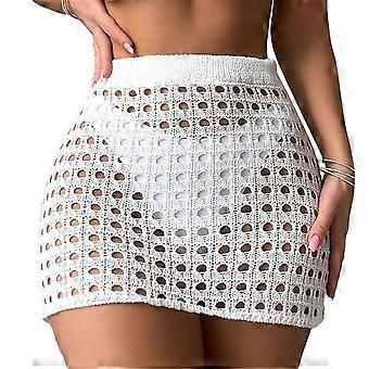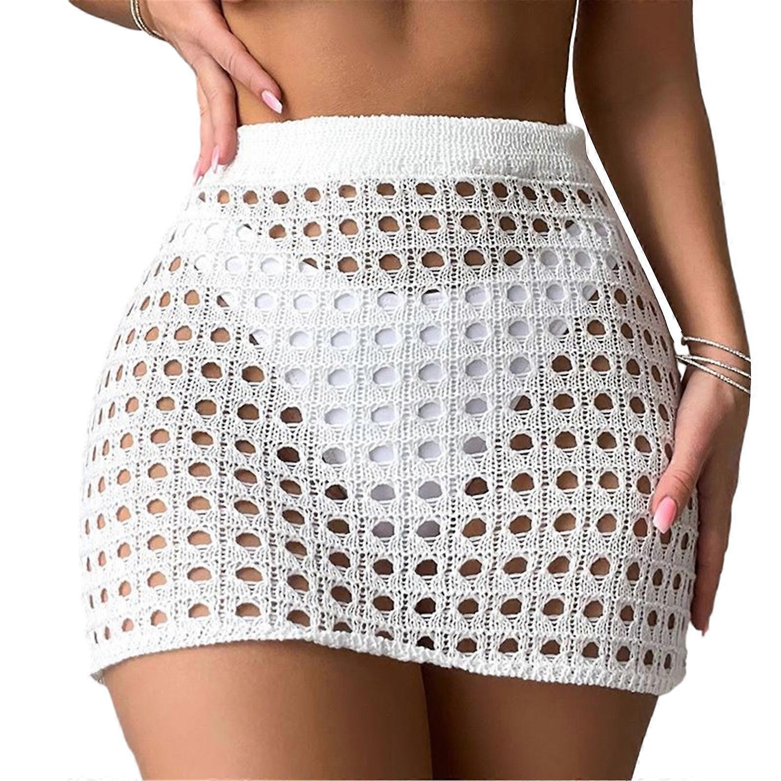 Women Sexy Hollowed Out Crocheted Cover Up Skirt See Through Beach Swimsuit Cover Up Elastic Waist Mini Bodycon Skirts White S