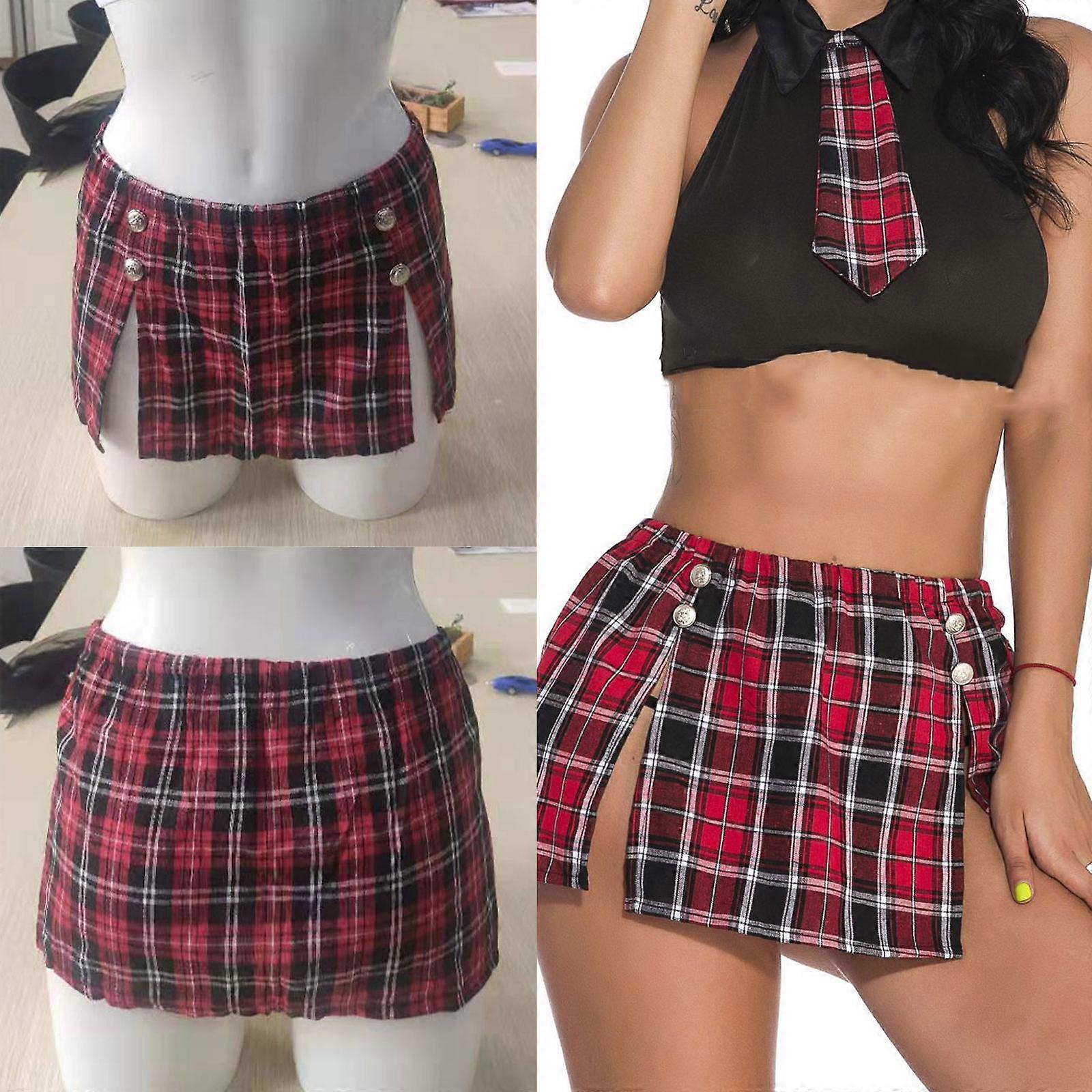 Women Sexy Cosplay Lingerie Outfit Set 2 Pieces Costume Preppy Style with Shirt Skirt Tie Naughty Wear Button Design Side Split Mini Plaid Fancy Dress