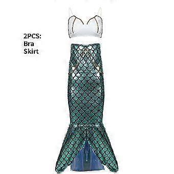 Women Sexy Little Mermaid Costume Anime Ariel Cosplay Bra + Mermaid Tail Sequined Maxi Skirts Set Princess Dress Set Halloween Banmo