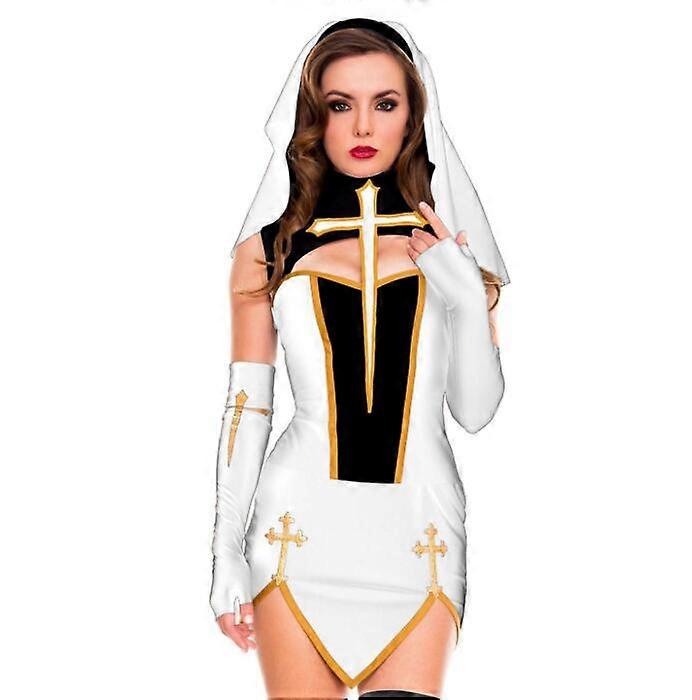 Woman Sexy Nun Dress Up Purim Party Church Religious Convent Cosplay Costume Halloween Clubwear Erotic Sister Superior Outfit