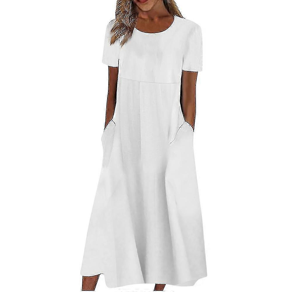 Women Solid Crew Neck Short Sleeve T-shirt Dress Casual Pocket Maxi Dress