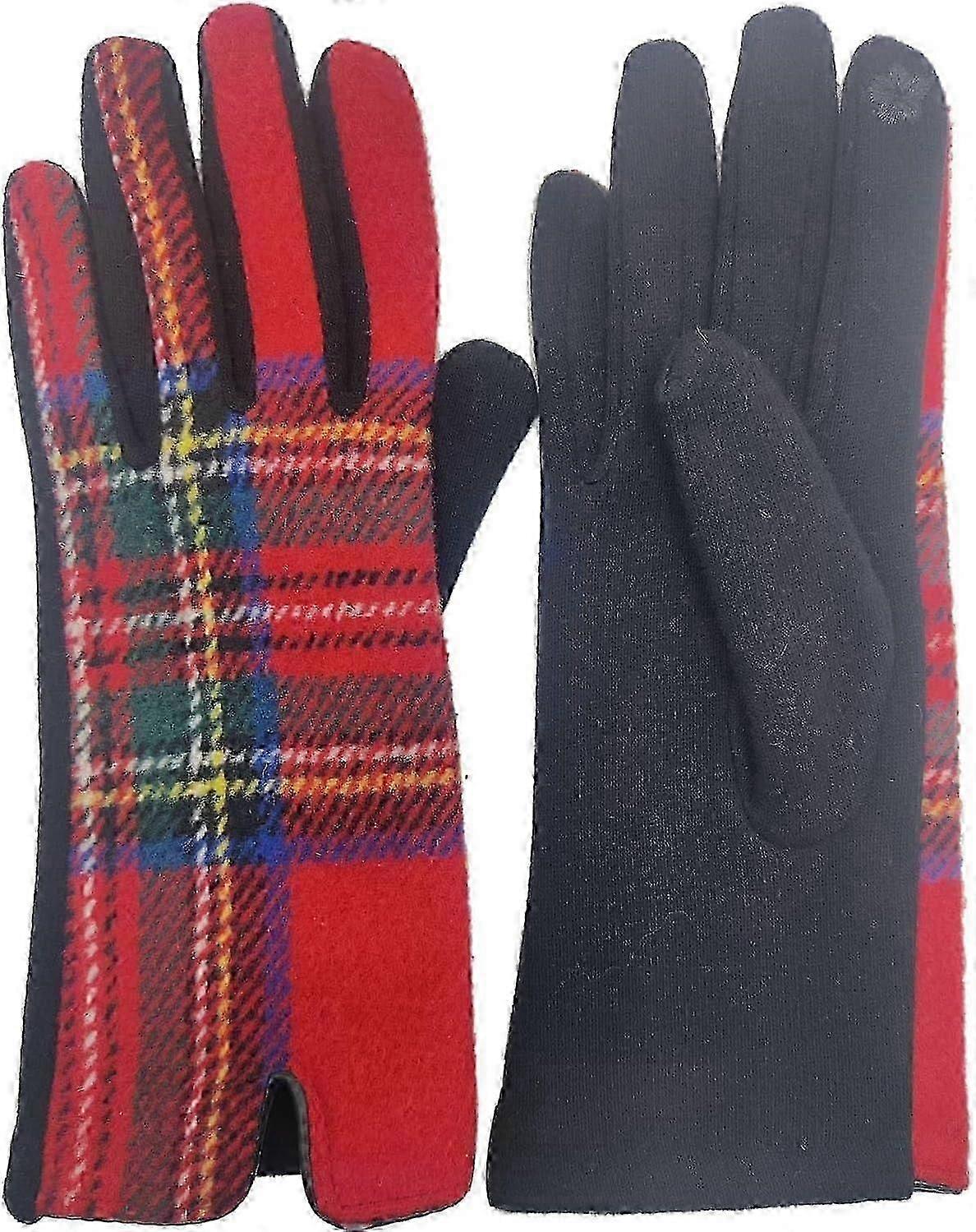 Women Tartan Checked Plaid Touchscreen Gloves Winter Warm Christmas Holiday Gift
