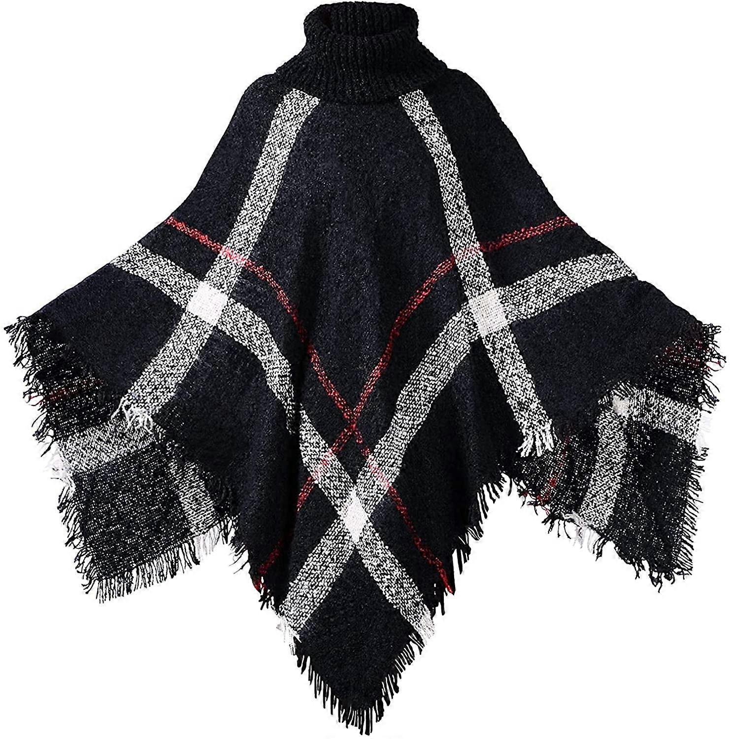 Women Turtleneck Poncho Sweater Knit Cape Pullover Shawl Wrap Tassels High Collar Batwing Poncho Winter Cloak