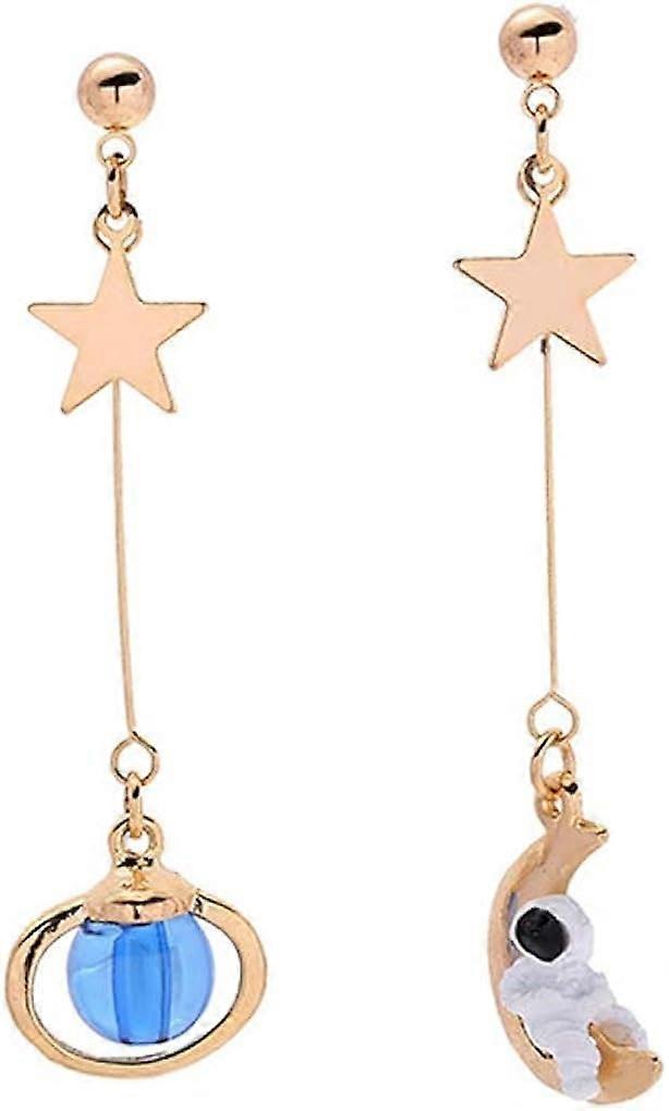 Creative Cartoon Asymmetrical Astronaut Blue Planet Stud Earrings For Women Charm Jewelry