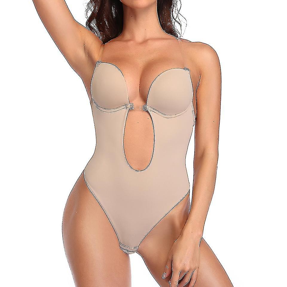 Features:1. High quality fabric, breathable and comfortable enough to be worn all day, sweat-free comfort, moisture wicking. Easy to hide.2. Lift your chest to new heights with this sexy body shaper. Naturally lift your chest.3.Backless strapless bodysuit: the backless body shaper bra for women with deep V-neck and open back design, underwired bras, U-plunge. This backless bodysuit is suitable for deep necklines and dresses with low back, e.g. dresses for parties, clubs and proms, wedding dresses and casual outfits in backless design.4.Seamless design: stretchy fabric for easy dressing, invisible under any type of clothing. Open crotch design for convenient use in bathroom. The silicone strap keeps the garment in place. There is a pair of extra longer straps for a better fit .5. The adjustable buckle is easy to put on and take off.6.Backless: show off your perfect shoulder and back curve7.Steel rims: under the chest, prevent the chest from hanging down.Specifications:Function: waist protection, body shaping, abdominal reduction, chest supportStyle: CasualColor: black, beigeSize :S, M, L, XL.Package includes: 1 x U-plunge bodysuit.Note:1. Please allow for size variations of 1 - 3 cm due to manual measurement.2. Due to different computer display colours, the colour of the actual item may vary slightly from the above images.